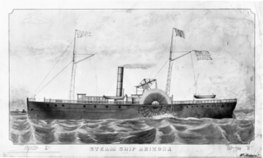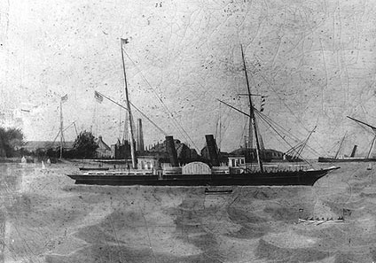 having an exposed walking beam. She was 208’ by 33’, with a 12’ draft, and armed